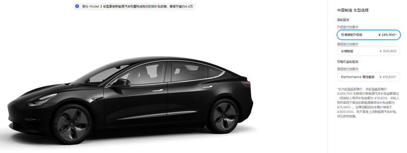 国产特斯拉Model 3标准续航升级版价格降至25万元以内;图片来源:特斯拉官网