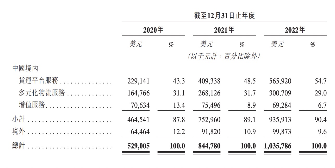 招股书显示,2020年至2022年,货拉拉分别实现5.29亿美元、8.45亿美元及10.36亿美元的营业收入,年复合增长率为39.9%。同时在2022年,货拉拉首次实现盈利,经调整后的年内利润为0.53亿美元。