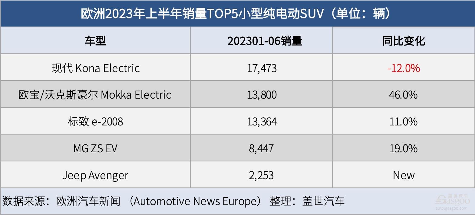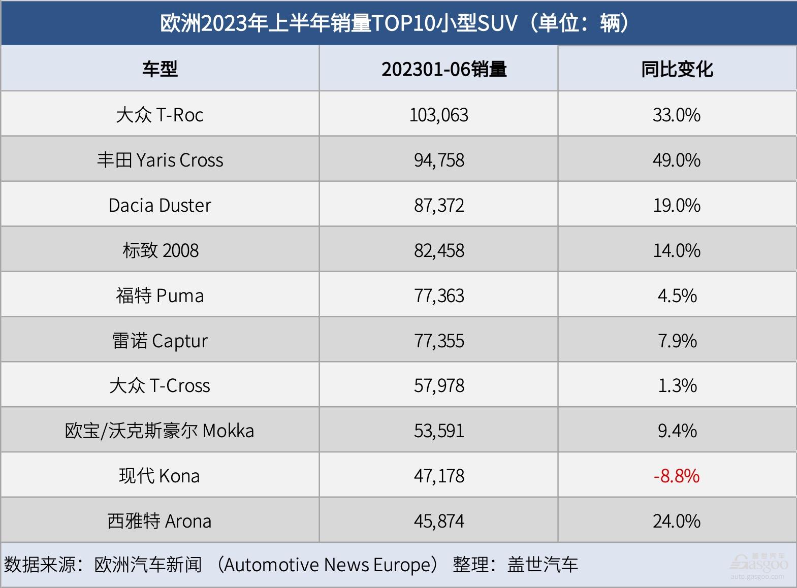 欧洲2023年上半年小型SUV销量榜单:电动汽车占比较小